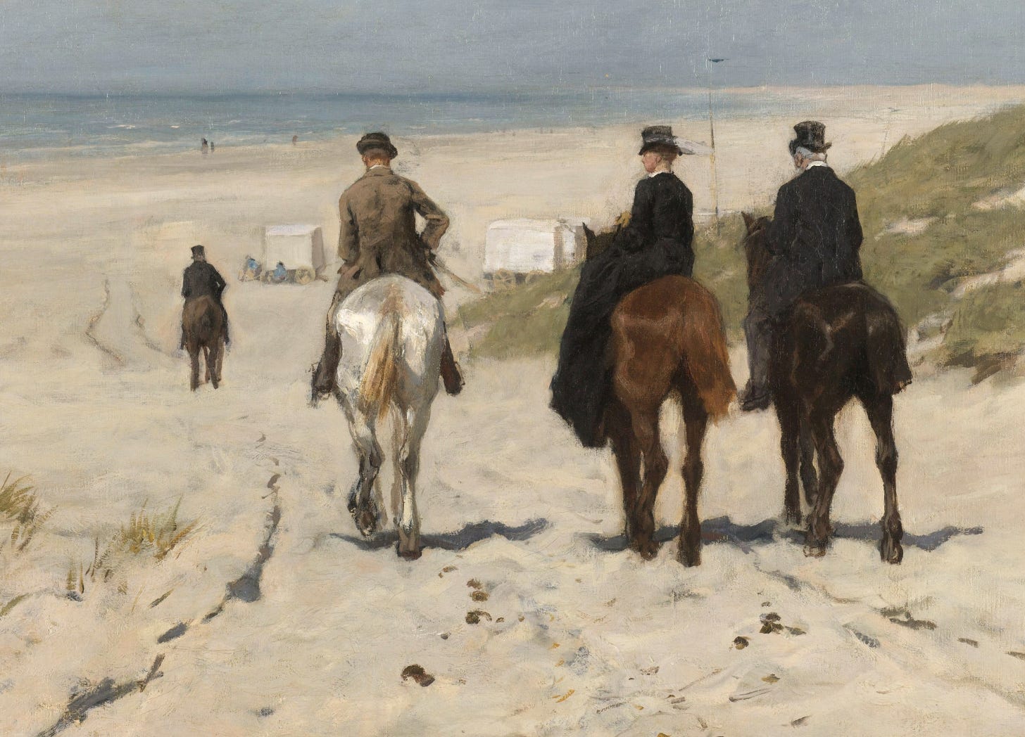 Anton Mauve, a leading figure in the Hague School, captures the quiet beauty of a morning ride along a tranquil beach. The soft light and muted tones create a peaceful atmosphere, allowing viewers to feel the cool morning air and hear the gentle lapping of the waves. Mauve’s attention to the subtle interaction between light and shadow on the sandy shore gives this painting a sense of calm and introspection, offering a glimpse into the serene moments of everyday life in the Netherlands.